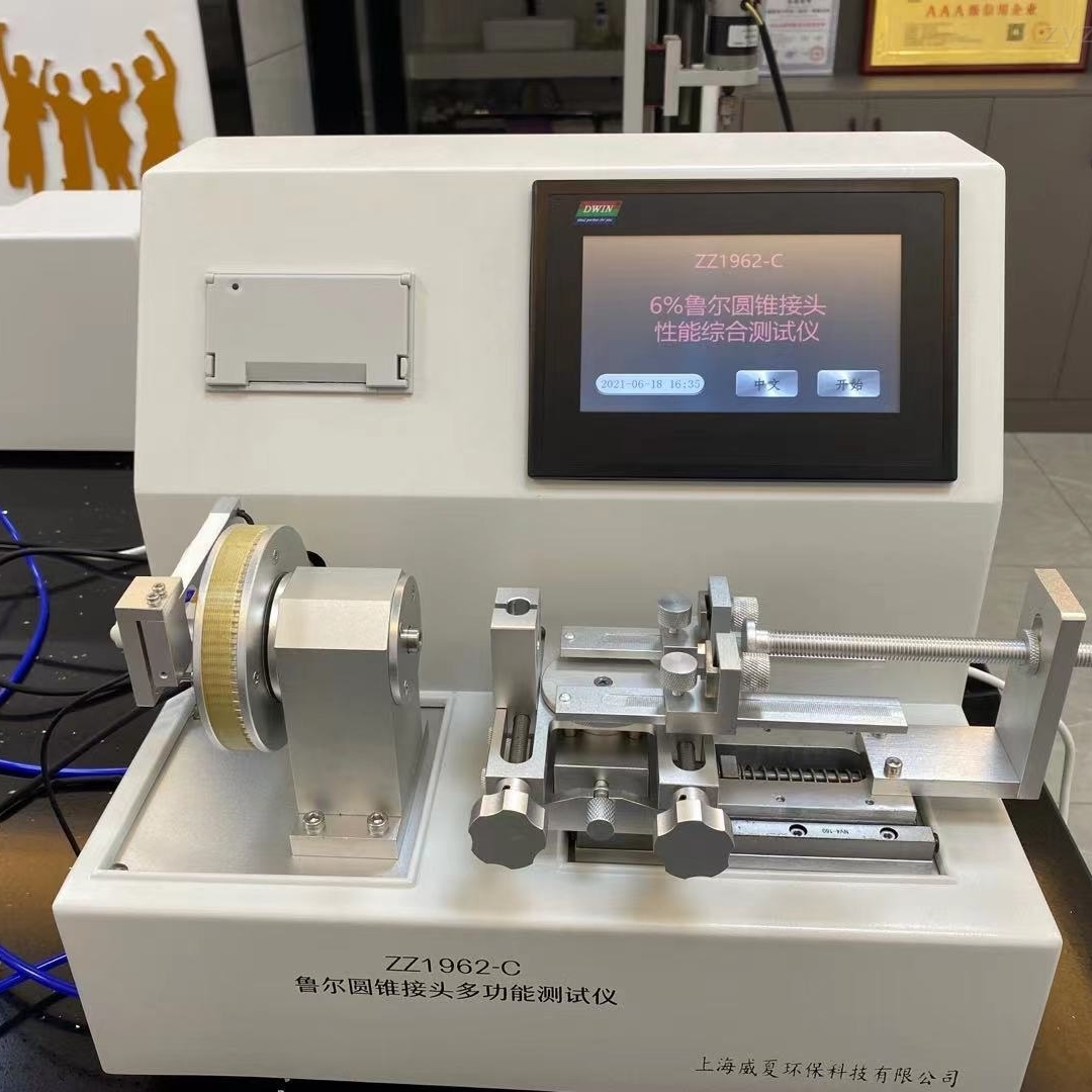使測試結果更加規範化標準化。信息安全方麵采用三級密碼,讓信息安全可靠。測試操控範圍包括:測試項目、公稱規格、產品名稱、打印設定、測試、上行、下行、時間、標定,檢定等功能設定。搭配機載打印測試可實時顯示測試數據,。針對測試結果自動判斷,不合格則啟動自動蜂鳴報警,並由打印機打印出測試數據及結果以供分析。在測試過程中顯示裝配施加的軸向力、扭矩、保持時間、內部水壓、可測試魯爾接頭的漏液、漏氣、分離力、旋開扭矩、易裝配性、抗滑絲性、應力開裂、壓力衰減泄漏、正壓液體泄漏、負壓空氣泄漏等各項性能,並在測試過程中顯示裝配施加的軸向力、扭矩,保持時間、內部水壓、分離力、泄漏率值,包括各種6:100(魯爾)接頭,(鎖定和非鎖定),如輸液器、輸血器、輸液針、導管、麻醉過濾器等。